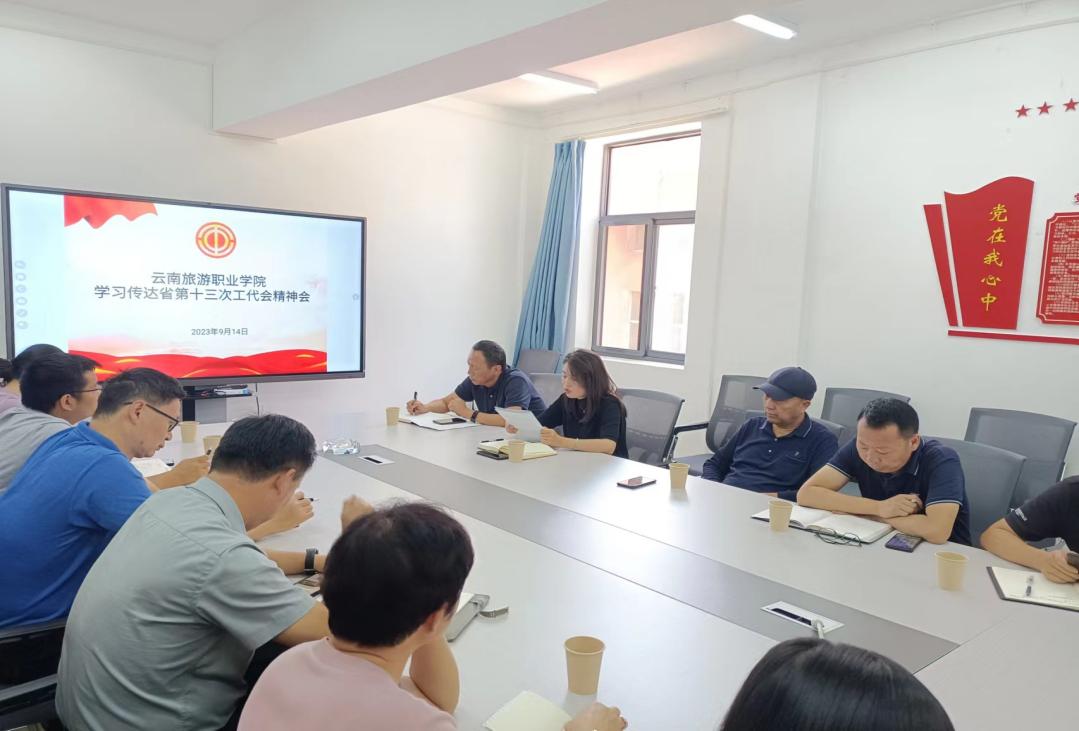 9月14日下午, 校 工会组织工会委员会 全体 委员 、各二级 工会 负责人 在后勤会议室 召开会议,及时 传达学习 云南 省第十三次工代会 会议 精神 ,党委副书记、 工会主席王敏主持会议 。