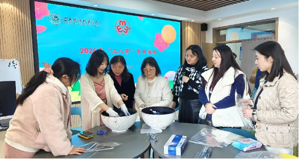 在“巧手绘漆扇,非遗韵雅趣”手工漆扇制作环节中,我校邀请到工艺老师为大家讲述漆扇的历史渊源与文化内涵,并细致传授了漆扇的制作技艺。女教职工们热情高涨,纷纷亲手体验扇面设计,将创意融入传统工艺。大家互学互助,氛围温馨而热烈,在欢声笑语中,一件件蕴含匠心与创意的漆扇作品应运而生。通过这次亲身体验,女教职工们不仅深切感受到了非遗文化的独特韵味,更在创作中享受到了传统工艺带来的无限乐趣与成就感。