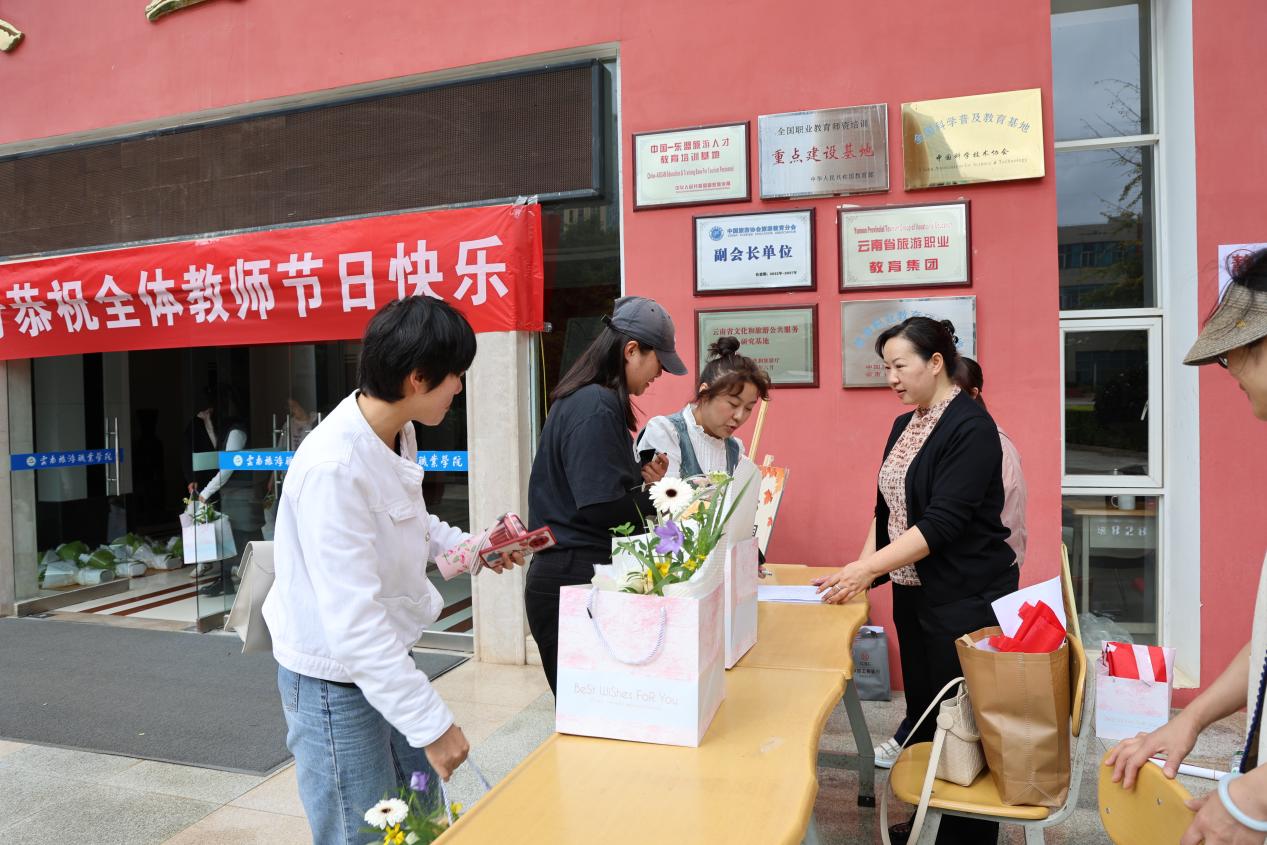 教师节当天,学院办公楼下每一位老师都可以领取专属花束,在鲜花的馨香中活力满满开始一天的工作。