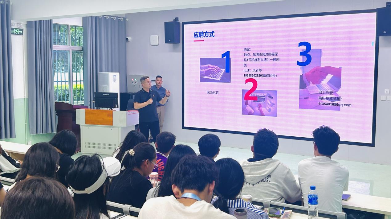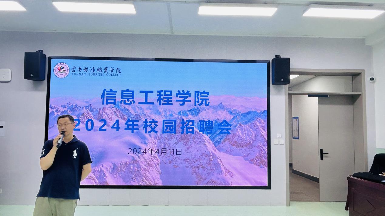 为聚焦当前促就业工作重点难点,精准拓展岗位,引导毕业生主动求职,助力毕业生高质量充分就业,4月11日,信息工程学院邀请云南全政安全考试服务有限公司负责人进校园为我院百余名学生做招聘宣讲。