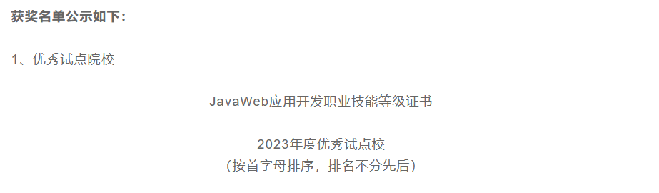 喜报|我校被评为2023年度Java Web应用开发职业技能等级证书试点工作优秀试点院校