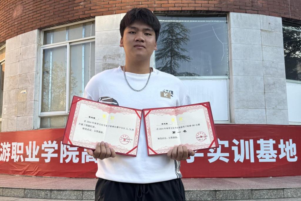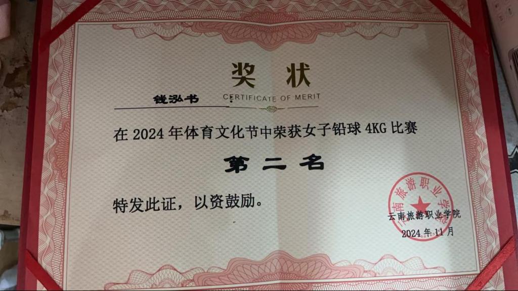 赛场上,铅球赛项无疑是力量与技巧完美结合的精彩展现。沉重的铅球,在运动员手中仿佛被赋予了生命。每一次的托举,都是力量的凝聚;每一次的旋转,都是技巧的诠释。每一次投掷都是对自我的挑战,每一个落点都是努力的见证,将力量与技巧展现得淋漓尽致,让全场观众为这充满爆发力的瞬间而热血沸腾。最终,软件2402班黄忠福同学以11.74米的成绩成功打破校运动会铅球赛项(5KG级)记录,成为新纪录的创造者!软件2303班钱泓书同学取得女子铅球4KG级第二名的好成绩。