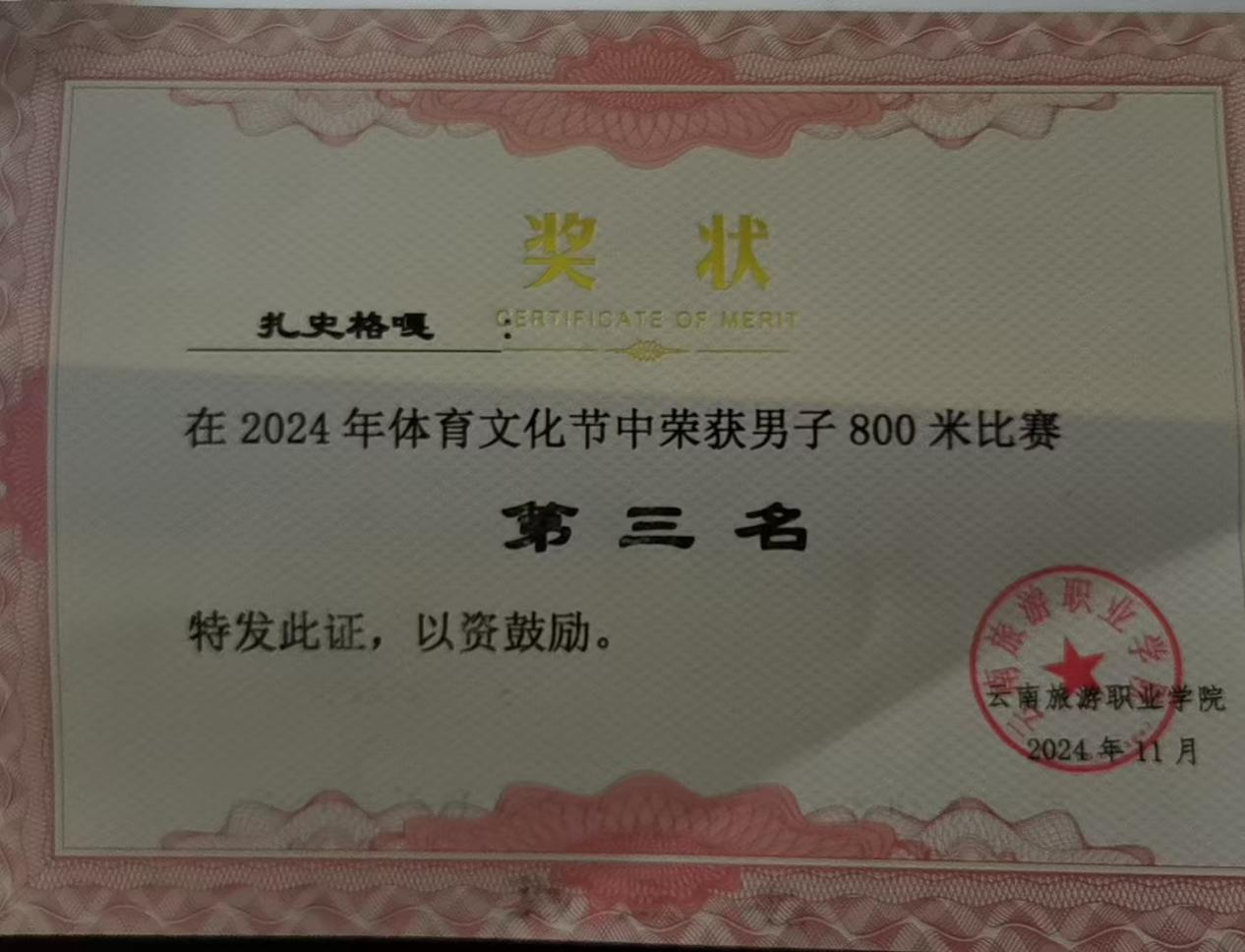800 米跑不仅是一次速度的较量,更是一种节奏的磨砺。在奔跑中,你会遇见不同风格的对手,他们会成为你前进的动力,和你一同挥洒拼搏的汗水,见证你超越自我的时刻和力竭时的顽强。这种竞争所孕育出的精神是坚韧而璀璨的,它会让你更加珍视赛道上的每一个身影。最终,网络2401班扎史格嘎同学、数媒2403班罗登凯同学分别获得男子800米比赛的第三名、第五名。