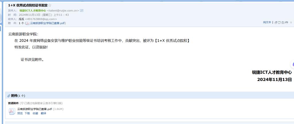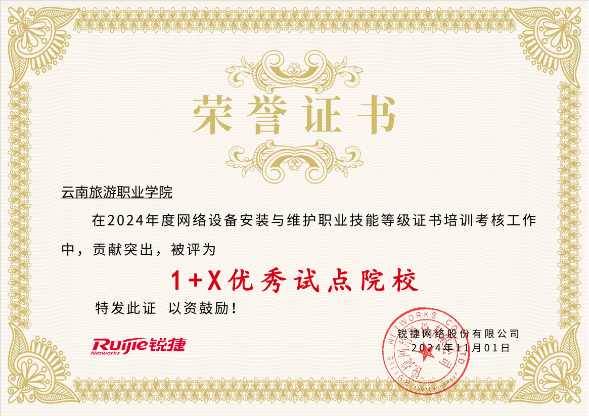 喜报|我校被评为2024年度网络设备安装与维护职业技能等级证书培训考核工作1+X优秀试点院校