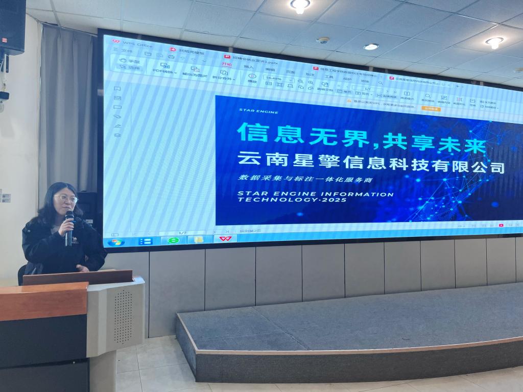 2025年5月30日,信息工程学院联合七彩智能云(文山)科技有限公司、云南星擎信息科技有限公司成功举办了“人工智能数据标注”专场招聘会。本次会议旨在提供精准岗位、为学生提供高质量就业机会、深化产教融合、优化人才培养。招聘会现场气氛热烈,吸引了我院众多学生参加。党支部副书记段石林、副院长周健、李帏燕及班主任参加了此次会议。