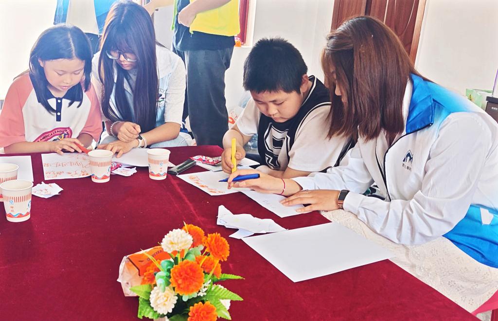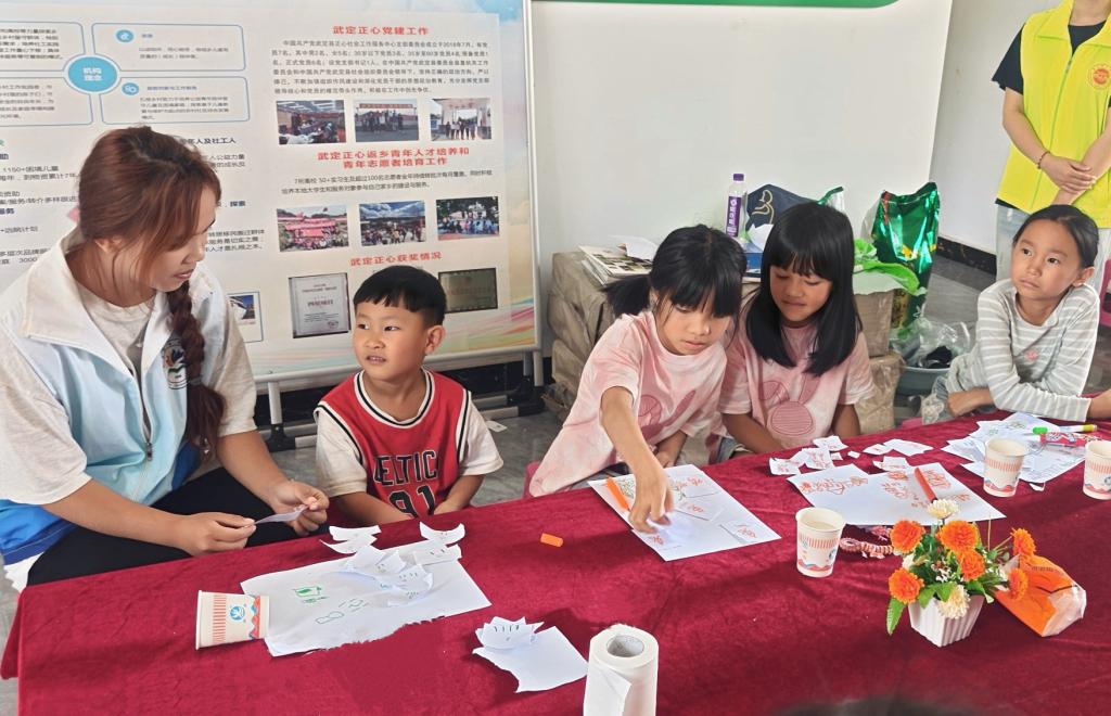 下午,团队在正心社会工作服务中心与孩子们开展互动活动。团队开设“普通话快乐课堂”,以游戏、儿歌等方式激发学习兴趣,帮助孩子们纠正发音、积累词汇。领队老师强调,推广普通话不仅是语言沟通,更是文化“通心工程”,团队将持续通过“劳模精神宣讲+推普助力”,为乡村振兴注入青春能量。