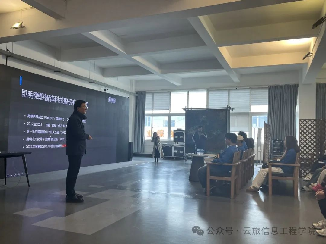 参观过程中,师生们首先来到了多媒体大厅,观看了园区运营建设宣传片。随后,他们参观了园区内的多家企业,包括昆明微想智森科技股份有限公司、云南优之云品电子商务有限公司、云南送吧物流科技有限公司等。这些企业在数字媒体技术、广告设计、电子商务等方面具有丰富的经验和创新成果。