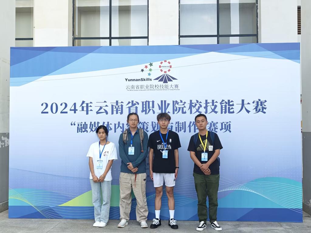 由凡尧、谢彬担任指导教师的邓金正、李颖颖、乔娟婷团队在“融媒体内容策划与制作”赛项中斩获省级一等奖。