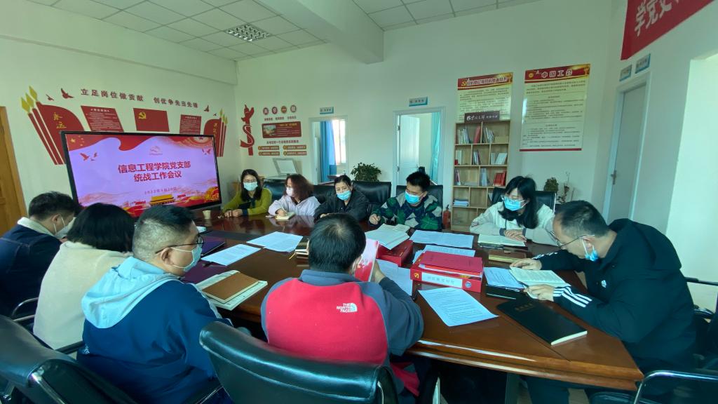 2022年4月20日下午,信息工程学院党支部统战工作会议在综合楼413召开。学院全体党员及教职工参加会议。会议由学院党支部副书记段石林主持。