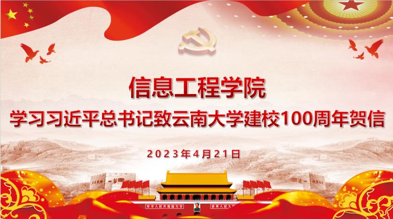 2023年4月20日,习近平总书记致信祝贺云南大学建校100周年,总书记的贺信在信息工程学院引发热烈反响,大家表示,要认真学习贯彻习近平总书记重要贺信精神,踔厉奋发、勇毅前行,坚守初心使命,为全面建设社会主义现代化国家、全面推进中华民族伟大复兴而团结奋斗。