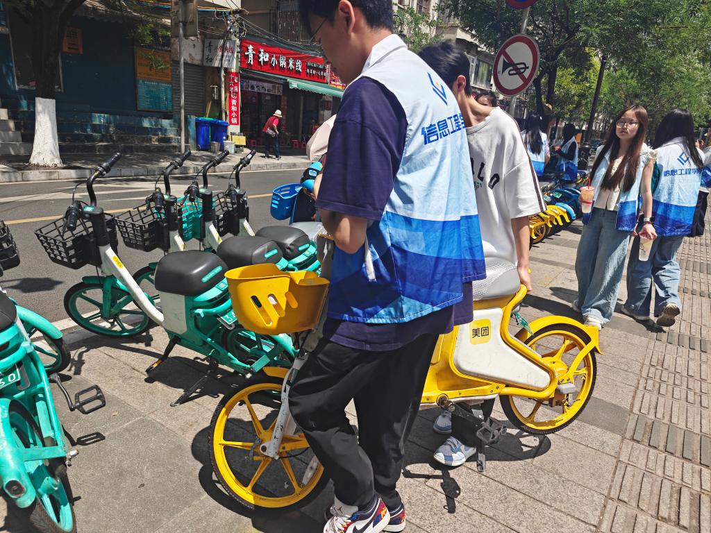 为弘扬志愿服务精神,营造整洁有序的城市环境,增强学生的社会责任感,近日,信息工程学院组织了一场以‘让共享单车归位“正轨”,还车身整洁无“癣”’为主题的公益活动。