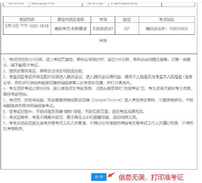 (4)打印模拟准考证。