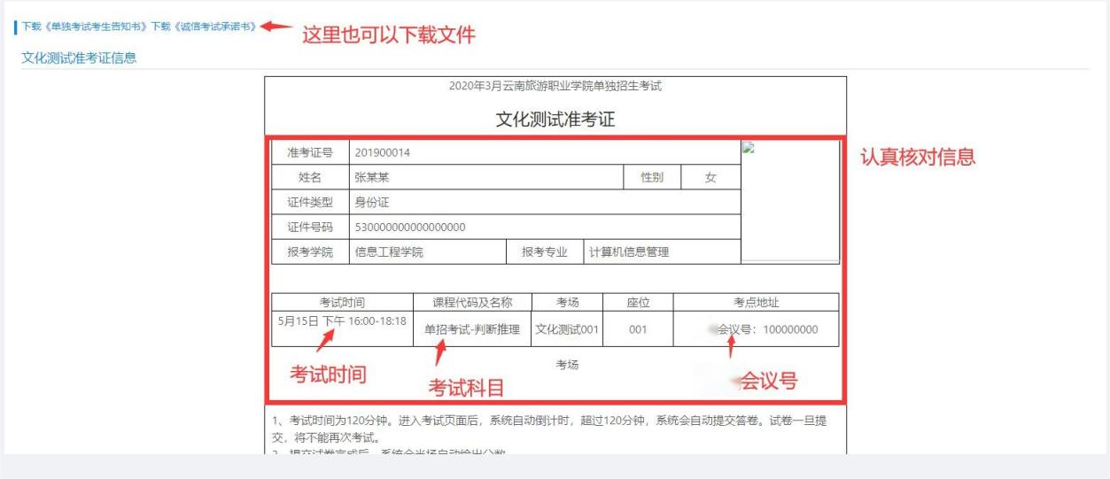 (二)查看准考证上的文化测试正式考试会议号,会议号位于考场信息处。