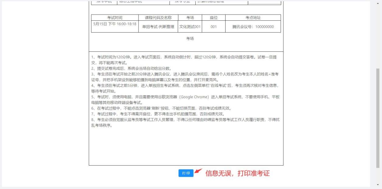 一、考生须在指定时间内,进入单独招生系统,查看并打印准考证。准考证打印只能在电脑上完成。