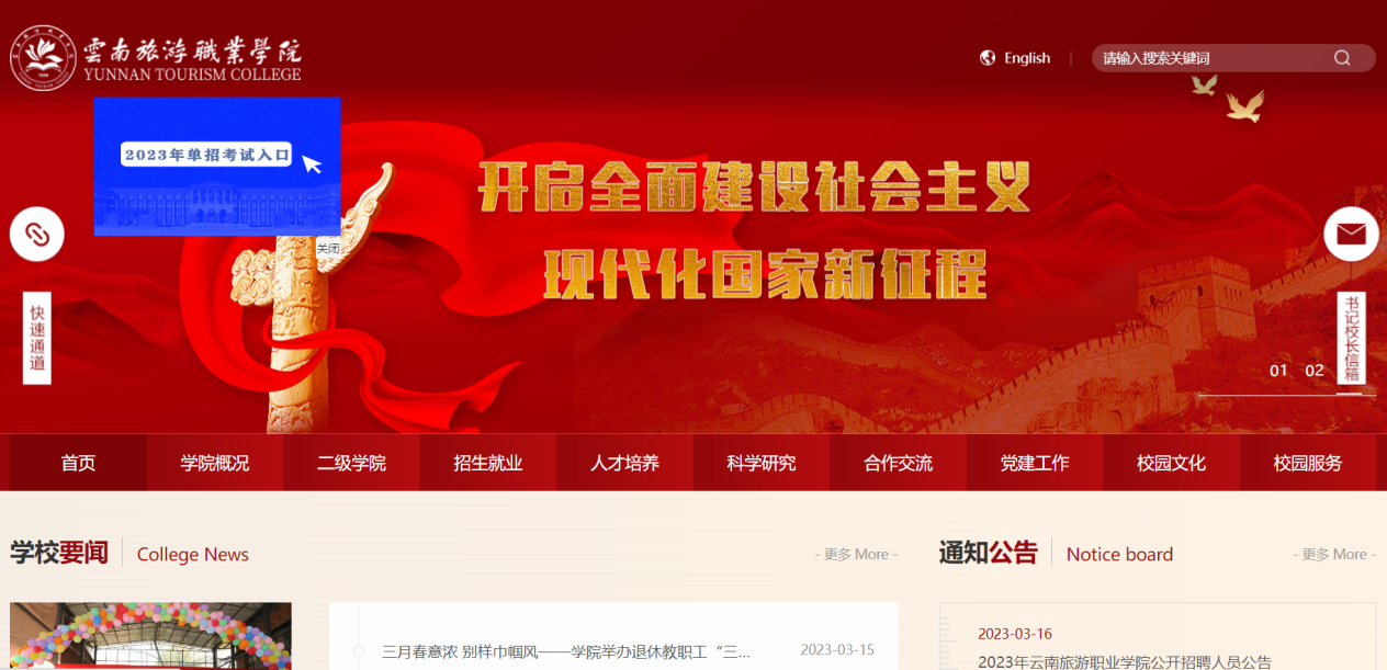 登录方式二:进入江南官方注册主页(/),点击页面中的蓝色浮动窗口(2024 年单招考试入口)进入。