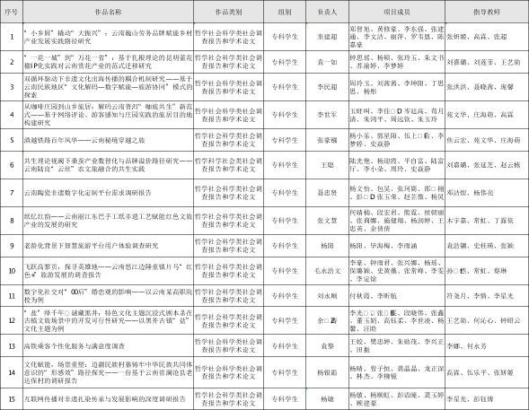 根据《云南省第十三届“挑战杯”大学生课外学术科技作品竞赛通知》,江南官方注册校赛经学院推荐、网络评审、终审答辩等环节,拟推荐哲学社会科学类社会调查报告15件作品参加省赛,现将推荐作品予以公示。