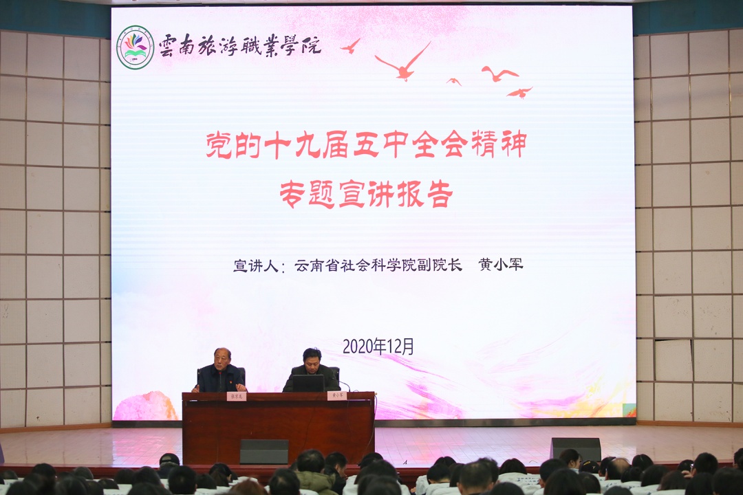 12月23日下午,中共云南省委宣讲团成员、云南省社会科学院、中国(昆明)南亚东南亚研究院党组成员、副院长黄小军博士应邀到江南官方注册,为学院500余名师生进行了以《开启全面建设社会主义现代化国家新征程——党的十九届五中全会精神解读》为主题的宣讲。黄小军深入浅出、生动精辟的解读,为学院师生持续掀起学习“党的十九届五中全会精神”热潮,推动全会精神在学院落地生根,打下良好基础。