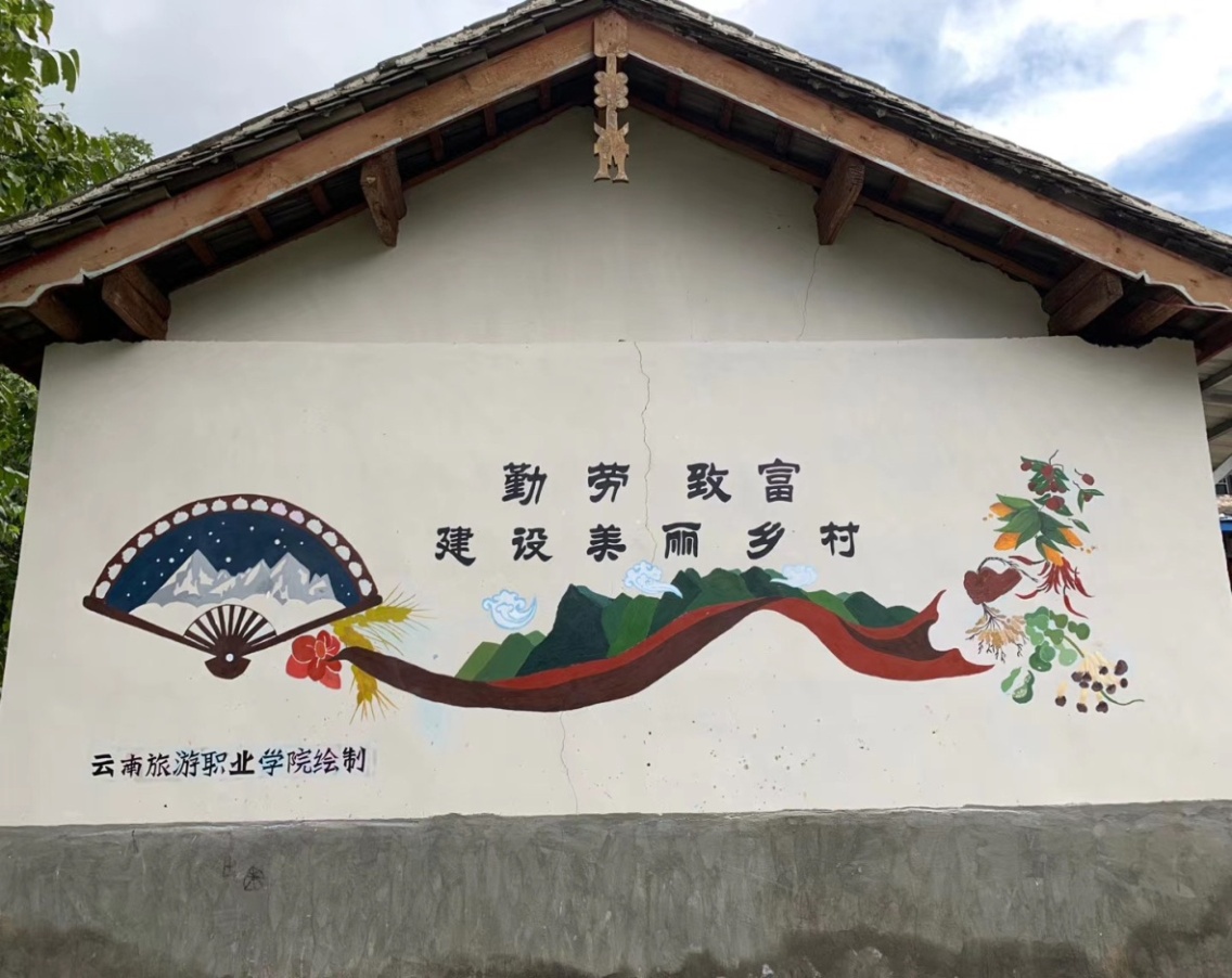 为挖掘和丰富仕达村的旅游文化内涵,学院对当地少数民族文化发展、保护与传承现状进行了调研,还利用仕达村主要道路旁的墙壁进行现场绘画创作,打造颇具地域和民族文化特点的文化展示墙。有针对性地挑选具有旅游开发潜力的地点,进行现场写生及文艺创作,营造民族特色文化旅游的良好氛围。
