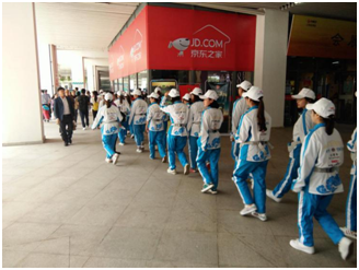 旅职小白云们早早就来到了会展中心等待新的工作安排。“第一二三小组的集合!”大组长赵松一声令下,三十位小白云迅速列队站好。