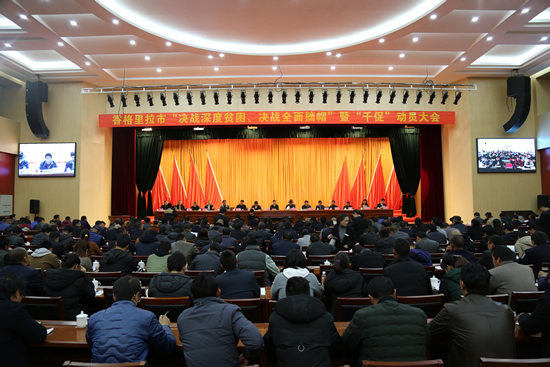 扶贫队员参加“‘决战深度贫困、决战全面摘帽’暨‘千促’动员大会”。