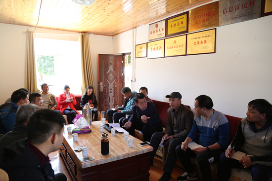 香格里拉市委副书记、扶贫工作队总队长崔永江,学院党委副书记、常务副院长韦明体了解仕达村情况。