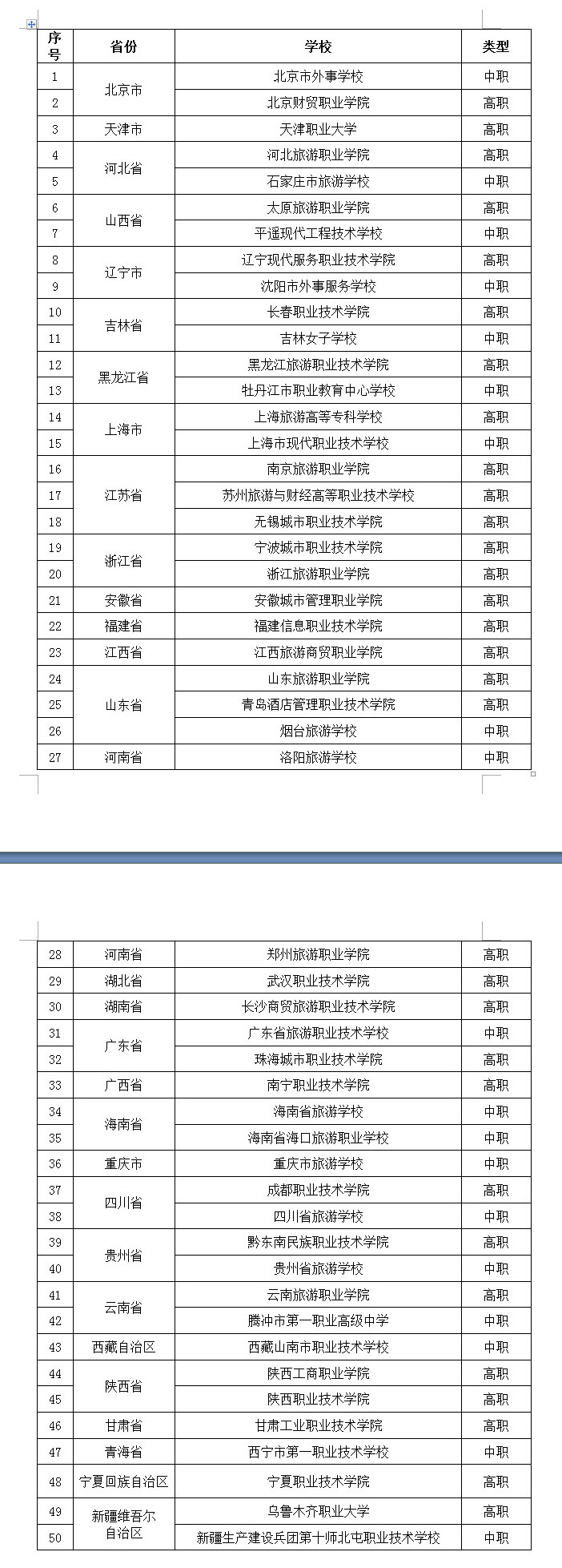 按照《国家旅游局办公室关于组织开展旅游职业教育校企合作示范基地遴选工作的通知》(旅办发〔2017〕266号),国际旅游局组织开展了旅游职业教育校企合作示范基地申报工作,并委托全国旅游职业教育教学指导委员会秘书处组织开展了专家评审,确定全国共50所院校入选国家旅游局旅游职业教育校企合作示范基地。名单于12月20日在国家旅游局官网上进行公示(查询网址:http://www.cnta.gov.cn/zwgk/201712/t20171220_850607.shtml)。