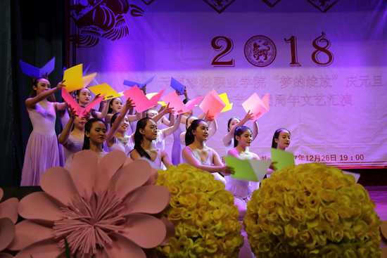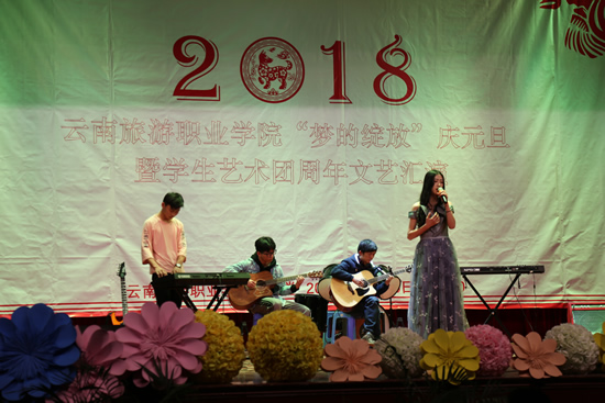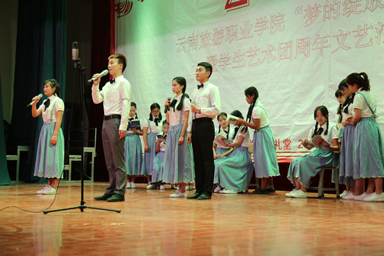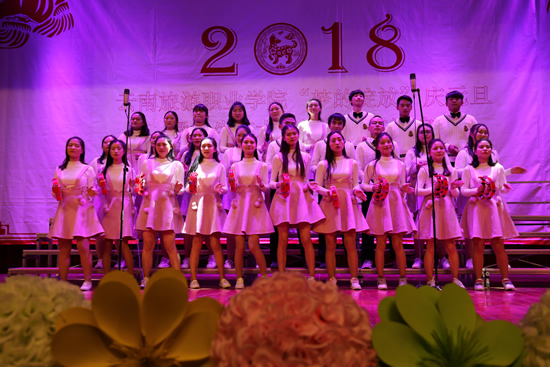 学生艺术团合唱队、民族表演艺术1701班、旅院新声音大合唱《贝加尔湖畔》《给明天一个美丽的期待》。
