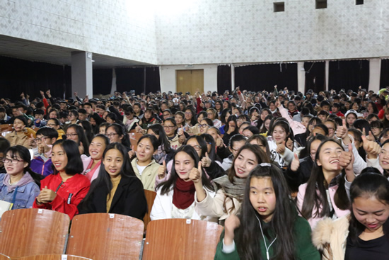 学院党委副书记、常务副院长韦明体在对同学们的致辞中,回顾了2017年以来我院的整体发展情况,向大家汇报和展示了学院在各项工作中所取得的成绩,并指明了未来的发展方向。适逢毛泽东同志124周年诞辰,在向伟人致敬的同时,韦明体同志也借用了毛主席1957年在莫斯科大学对学生们说的一句话来激励大家:“世界是你们的,也是我们的,但是归根结底是你们的。” 韦明体同志激情澎湃的致辞赢得了全场学生鼓掌欢呼,大家还竖起大拇指为学院点赞。