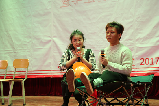 学生艺术团话剧队表演话剧《大学生还贷》。