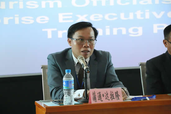 老挝驻昆总领事坎蓬·冯桑迪先生在致辞中肯定了两国旅游交流培训活动的价值和意义,并明确提出老挝旅游业需要向中方学习,他希望老挝学员们能够通过本次活动与中方进行旅游行业的经验交流。“旅游业在老挝国民经济中占比很高,现在全球的旅游业发展都面临着新挑战,竞争不断加剧。希望通过此次活动,中老双方可以探讨旅游业新模式。” 坎蓬·冯桑迪先生还希望老挝培训交流团能够充分理解“一带一路”倡议和“澜湄合作”框架,同时也积极宣传老挝的旅游和文化,当好“文化使者”。