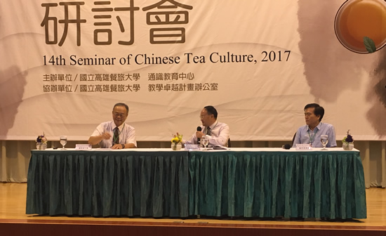 30日,召开了第14届中华茶文化研讨会。上午九时,由高雄餐旅大学副校长刘喜临教授主持开幕典礼,代表会议主办方致欢迎词。随后,由台湾茶协会理事长陈玉舜教授进行“台湾茶产业与观光发展”的专题演讲,利用翔实的数据介绍了台湾茶产业的起源、发展及当前茶种植、茶叶贸易、茶产业发展的困惑。之后,由浙江旅游职业学院党委书记王昆欣主持,进行学术论文讨论,就高雄餐旅大学及南台科技大学两位年青学者撰写的“以体验经济的观点谈观光休闲茶园的规划与经营”、“翻转古典茶文学课程的现代创意力”两篇论文进行会议交流,并由相关学者进行现场点评。