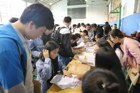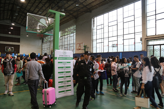 笔者在现场看到,虽然整个体育馆内人头攒动,但是各项工作都安排得有条不紊,进行得井井有条。学院领导、各行政职能部门和各二级学院的工作人员都各司其职,志愿者们也积极协助新生和家长完成各项手续,引导已经完成报到手续的新生去到宿舍,并耐心细致地回答新生和家长们的问题,帮助他们融入旅院大家庭。