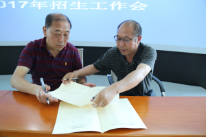学院党委书记、院长张京龙和招生与就业处、七个二级学院负责人分别签订招生目标责任书。