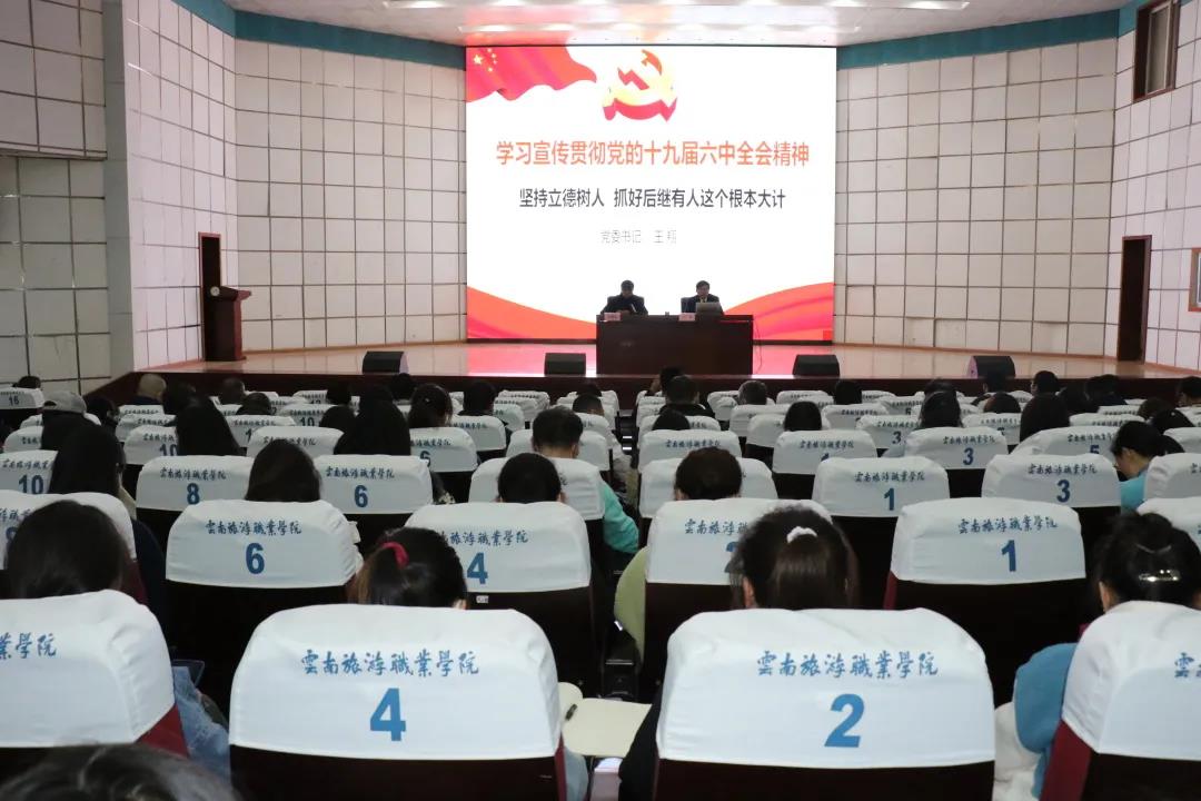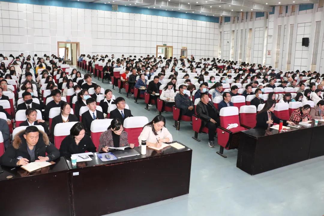 党委副书记自德权主持宣讲会,并从学原文、悟原理、重实践三个方面就学习宣传贯彻党的十九届六中全会提出要求。校领导,党支部书记、全体中层干部,思政课教师、辅导员,团学干部代表共500余人参加会议。