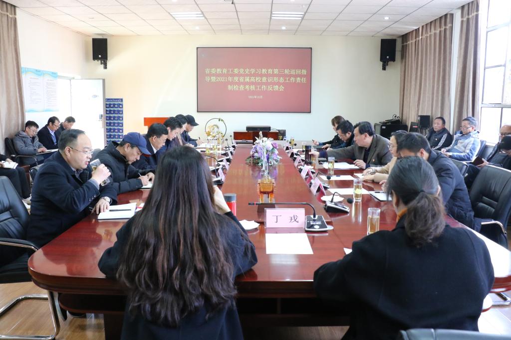 12月21日,省委教育工委党史学习教育领导小组第七巡回指导组在刘沧山组长的带领下一行5人到我校开展党史学习教育第三轮巡回指导暨2021年度意识形态工作责任制落实情况检查考核。