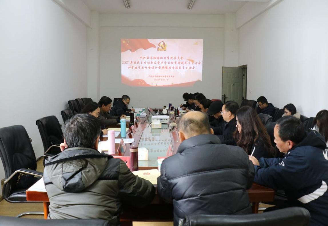 根据省委教育工委统一部署,2022年1月17日,学校党委班子召开2021年度民主生活会暨党史学习教育和中央生态环境保护督察整改专题民主生活会。省委教育工委、省教育厅党史学习教育第七巡回指导组同志到会指导,指导组组长西南林业大学原党委副书记刘沧山同志作点评讲话。