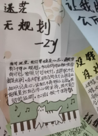 当日,活动现场摆放着“心理加油站——说说你的困扰,我来帮帮你”的主题海报,显目的布置吸引了不少同学驻足观看。展板上密密麻麻的彩色便签引得广大学生积极参与。都有哪些内容呢?一起来看看吧!