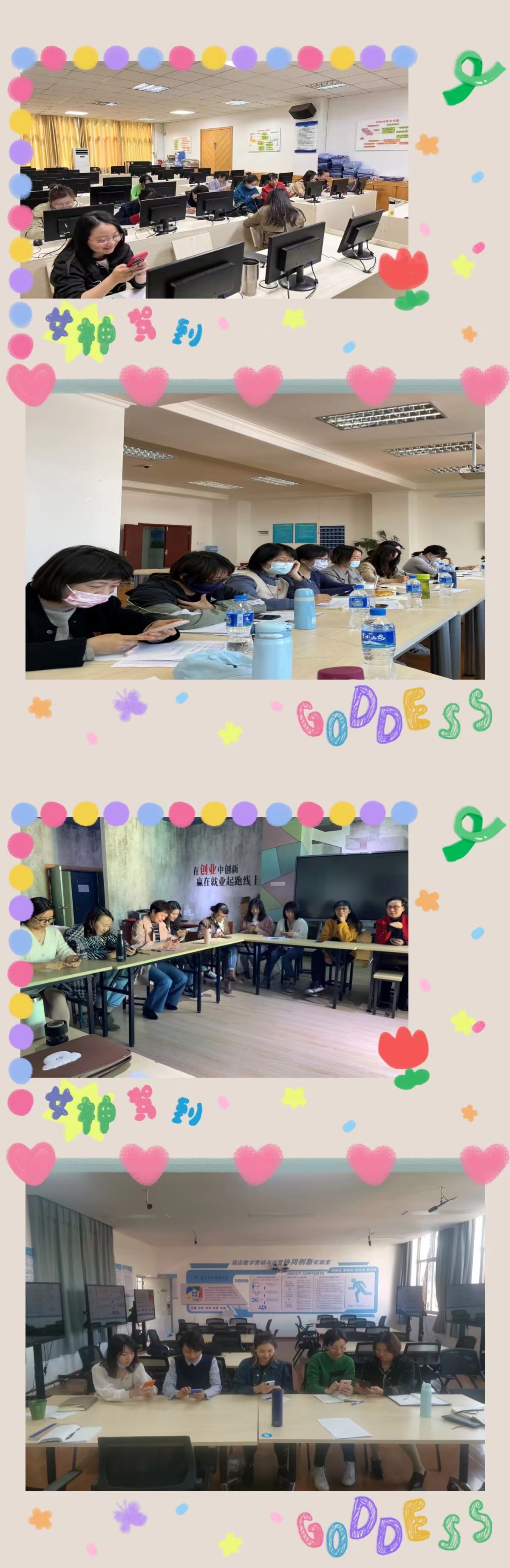 全校女职工和女大学生以饱满的热情、积极的态度、踊跃参加了本次活动。活动分设教工和学生二大组项,教工以“书香女神女性健康知识竞赛”拉开序幕,女大学生则以征文、摄影、短视频创作、宣传画创作等提智培才的比赛活动方式参与纪念活动。 3月9日下午所有女教职工以工会小组为单位在线上限时完成了健康知识问答,最终团体总分一等奖由文化艺术学院工会小组获得;二等奖由党群工会小组和旅游管理学院工会小组获得;荣获三等奖的是教务工会小组、学生工作工会小组和经济管理学院工会小组。随后全院女教职工参加了“女职工关爱月名医大师健康科普大讲堂”专场学习。按活动计划,在4月底前,女教职工还将陆续参加“编织美工”培训、“健康美体”锻炼、“康养美食”技能学习、“靓丽美颜”分享会等特色活动。
