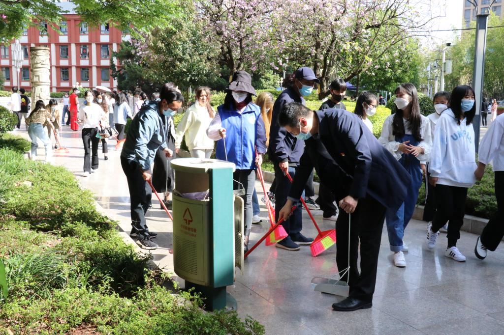 仪式结束后,学校领导带头与相关职能部门人员、教师、学生、物业人员一起对学校公共区域、教学场所等重点领域开展了一次彻底全面的清理、清扫活动,经过一个多小时的努力,校园环境焕然一新。