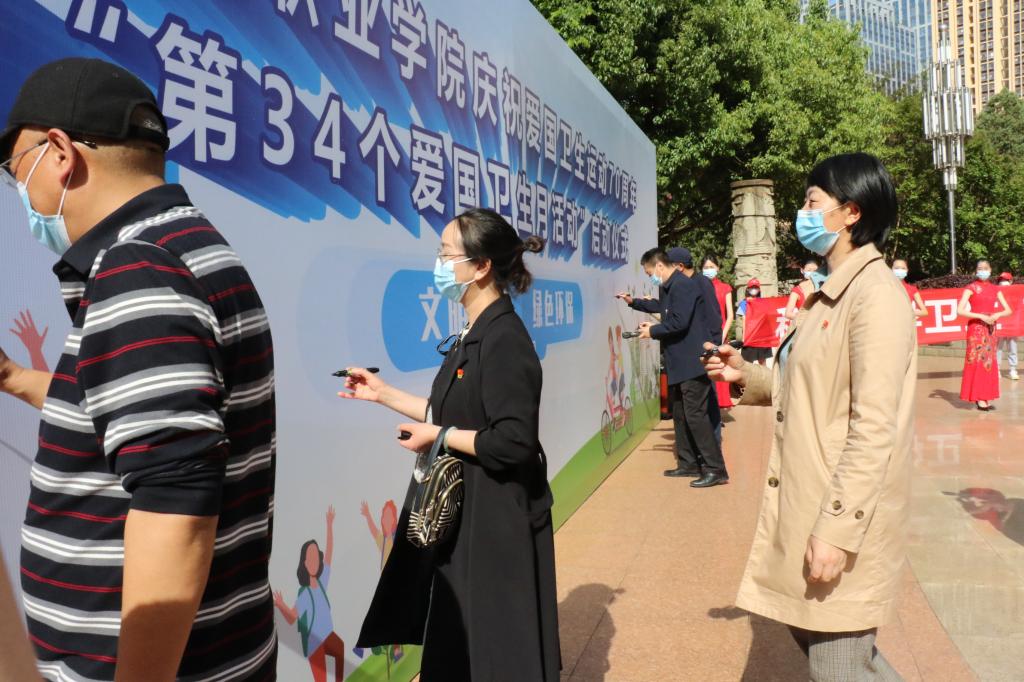 启动仪式以“文明健康 绿色环保”为主题,下午16时30分党委副书记、校长蔡冰代表学校宣布江南官方注册第34个爱国卫生月活动正式启动。校领导、各二级学院党支部书记以及部分团学干部代表在文化墙上签字并合影留念。活动号召广大师生要积极参与爱国卫生运动,进一步巩固校园疫情防控成果,为营造干净整洁、健康有序、宜居优美的校园环境打下坚实基础。