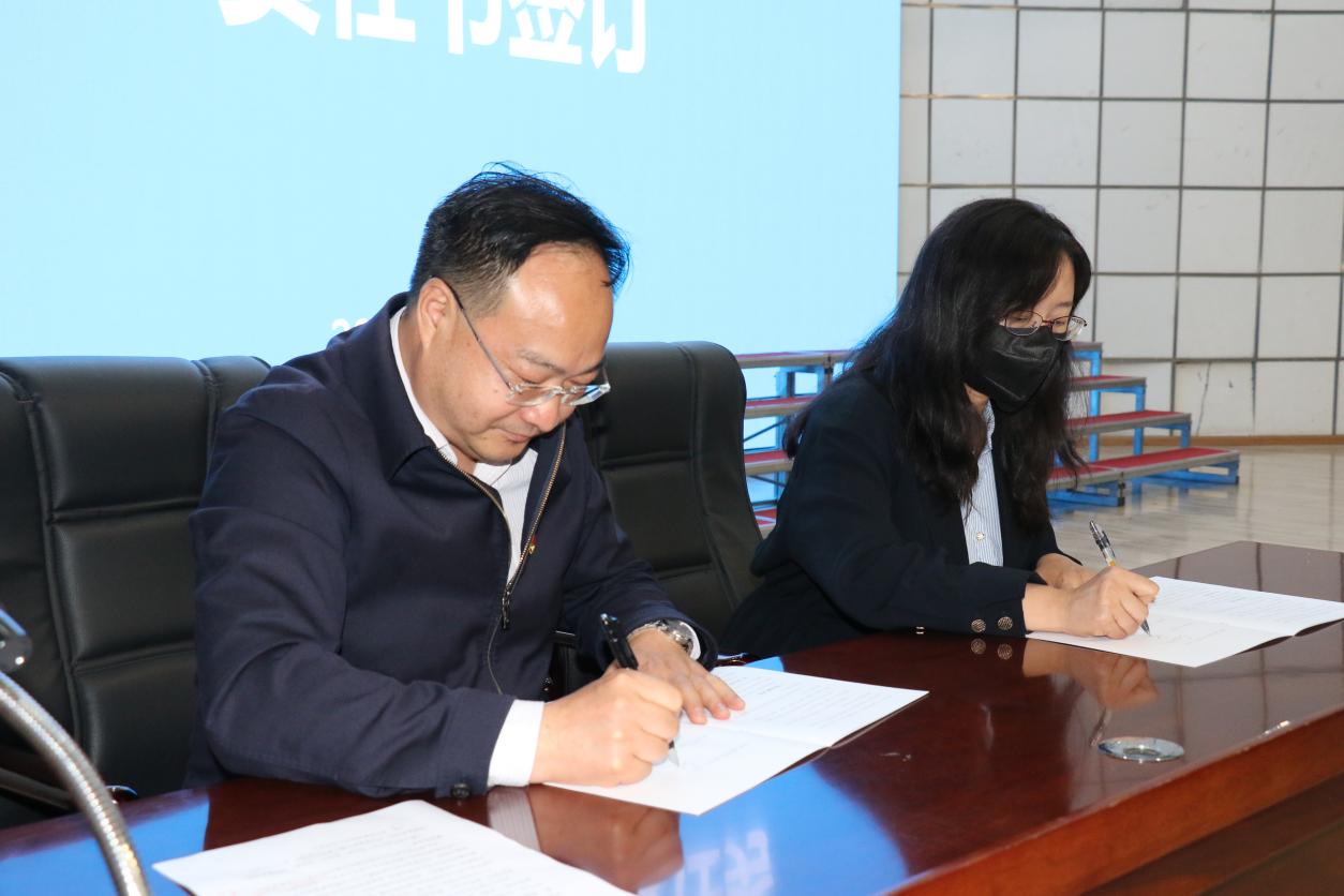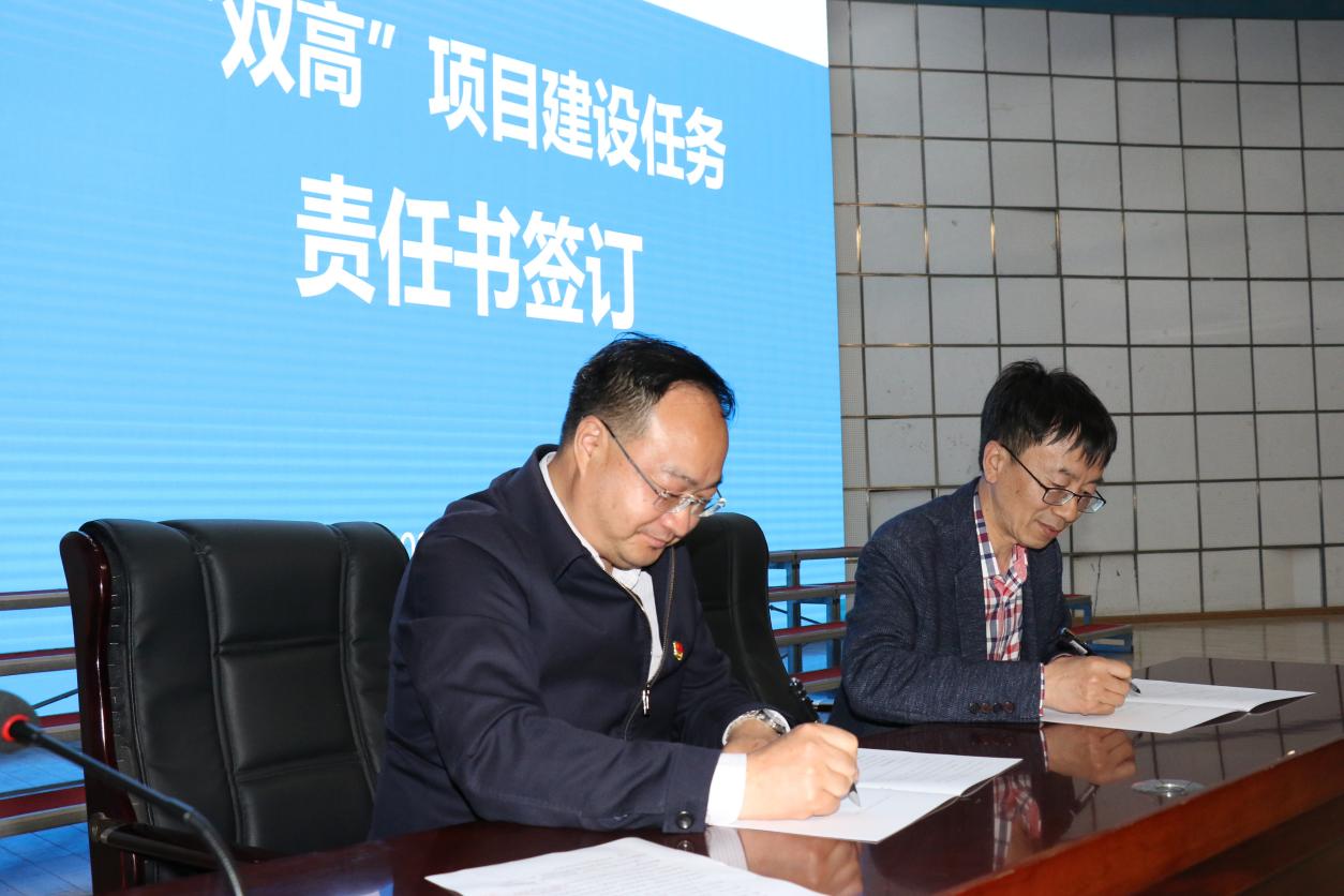 副院长符继红代表学校双高建设领导小组,与宣传部、教务处、学生处、继续教育学院、旅游管理学院、经济管理学院等责任部门负责人签署建设项目责任书。