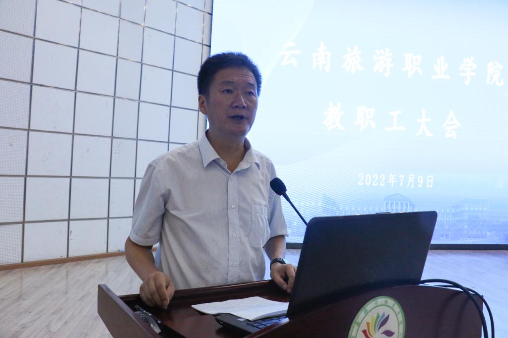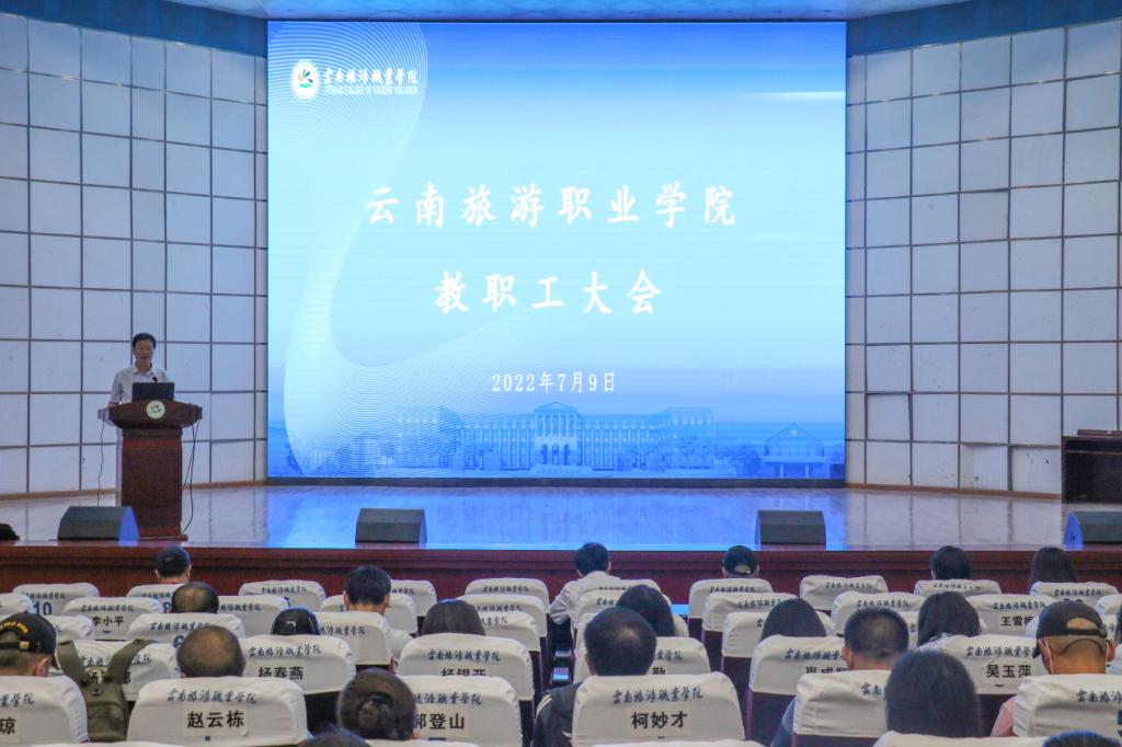 7月9日上午,学校2022年上半年全校教职工大会在报告厅举行,会议旨在总结过去、开启未来激励全校教职工鼓足干劲,奋力拼搏,推动学校2022年内涵式高质量发展再上新台阶。校领导、全校教职工参加会议,会议由党委副书记、校长蔡冰主持。