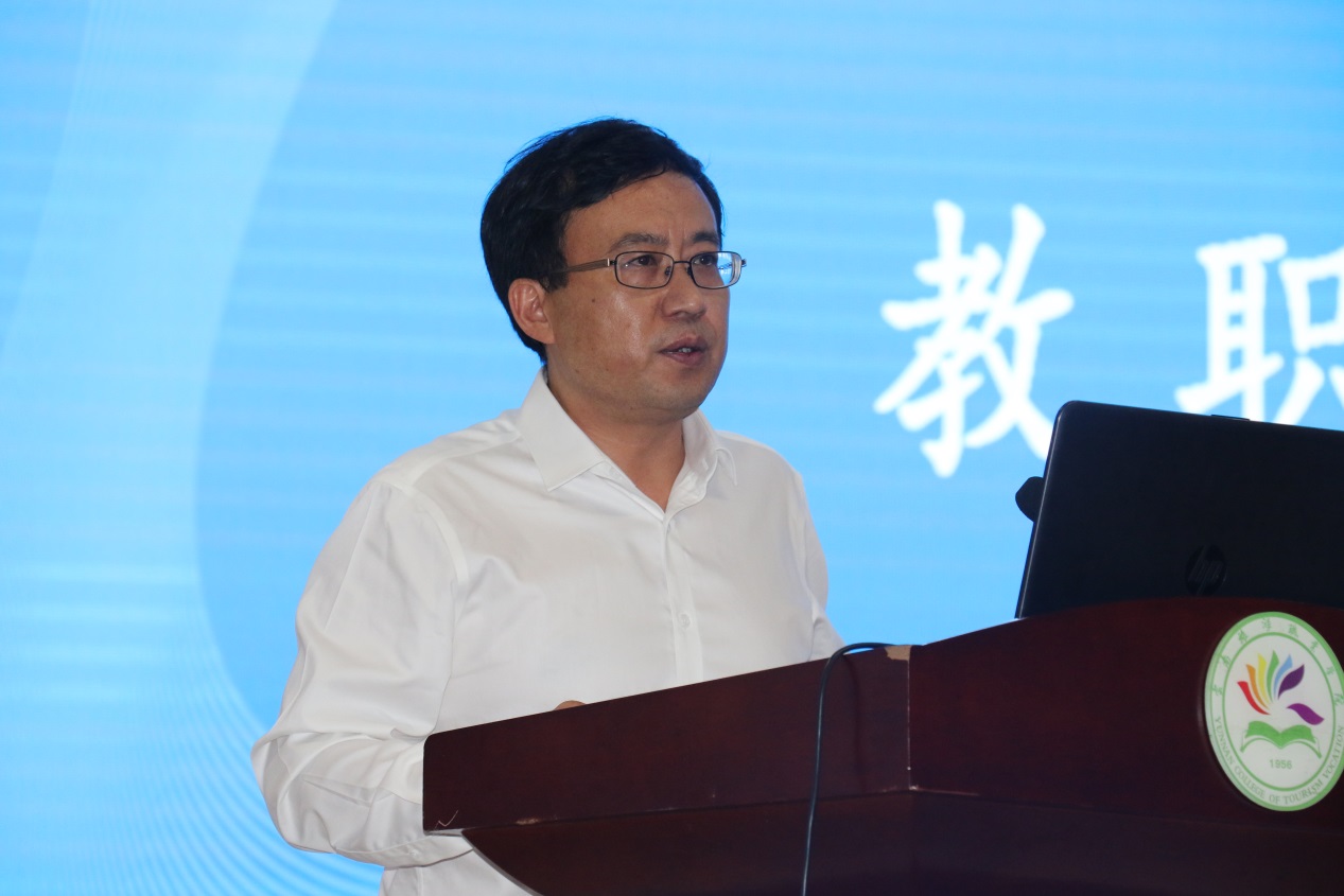 展望暑期和下半年工作,王翔书记提出三点要求:一是要紧紧围绕学校发展目标,突出政治引领,激发实干争先活力,凝聚团结奋进力量,树立“全校一盘棋”意识,努力担当作为。二是突出重点工作,提升办学治校水平;细化目标任务,加快绩效工资分配方案配套实施办法出台;强化工作举措,推进“十四五”规划和“双高”建设工作落实;抓实抓细问题整改,不断提高办学治校水平。三是要突出党建引领,推进党风廉政建设;要明责任,夯基础,筑牢坚强堡垒;严纪律,守规矩,优化政治生态,扎实推进“五清旅院”建设,不断推动校风教风学风整顿取得实效。