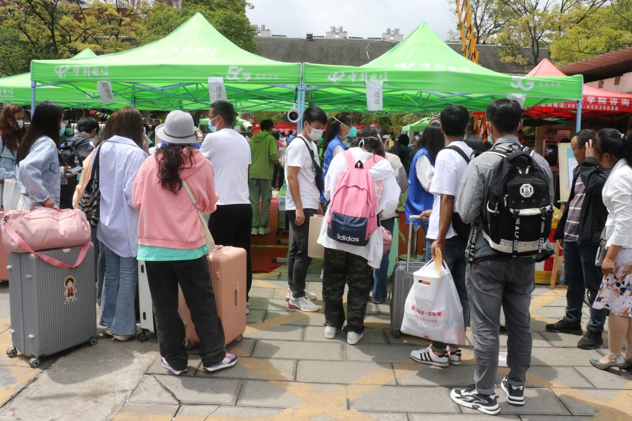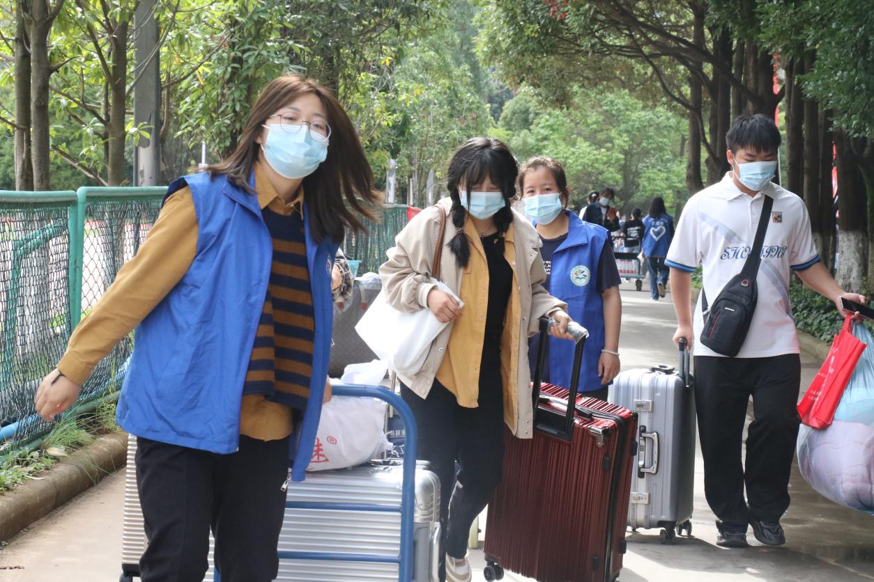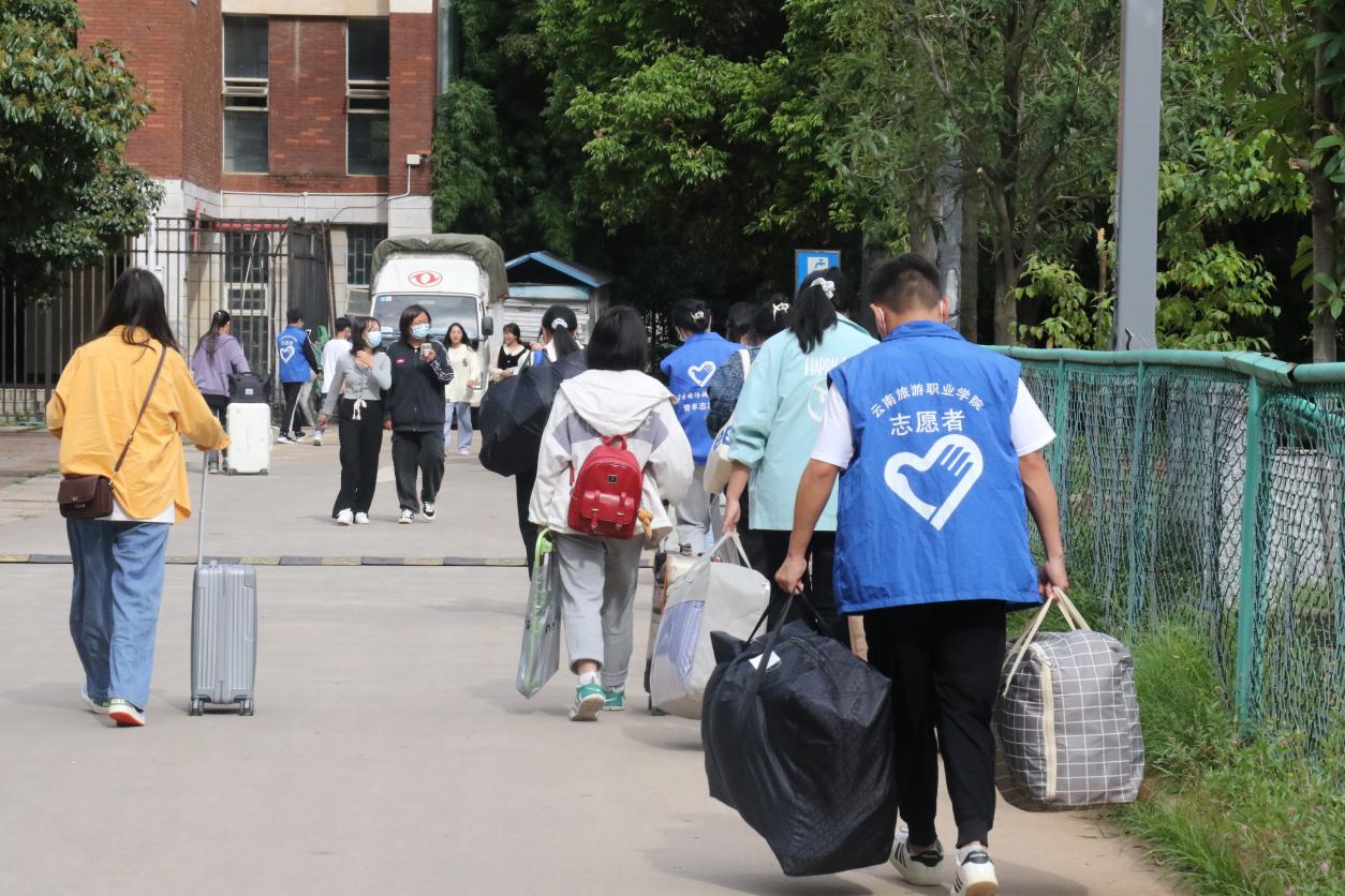 学长们热心的关心服务,给新生留下了深刻印象。2022级文化艺术学院“高速铁路客运服务”专业的舒雪琴同学说:“原本还担心带的行李太多拿不动,到了现场才发现自己的担心很多余,有志愿者帮忙搬运行李、现场引导,很快就办完了手续。”2022级大数据技术专业新生李毅说:“不论是笑脸相迎的学长,还是温柔周到的学姐,都让我感受到了旅院的温暖。”