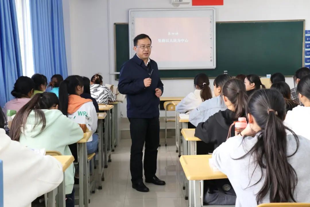 为深入学习宣传贯彻党的二十大精神,全面贯彻党的教育方针,落实立德树人根本任务,认真落实领导班子践行一线工作法、主动进课堂讲授思政课等要求,连日来,校领导分别走进课堂,开展系列有思想、有温度、有深度的新时代思政课,为同学们宣讲党的二十大精神。