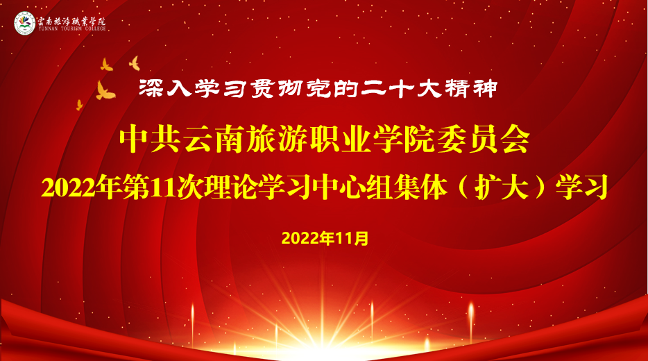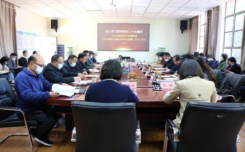11月30日下午,我校召开党委理论学习中心组2022年第11次集体(扩大)学习,深入学习贯彻党的二十大精神,并结合《中共云南省委教育工作领导小组关于印发奋进西部先进行列行动计划之职业教育的通知》有关内容进行专题研讨。省委教育工委、省教育厅党组2022年第二轮巡察第一巡察组冯志宏组长及相关同志列席旁听了此次学习,校党委书记王翔主持学习并作主旨发言,党政班子成员、部分中层干部参加学习。