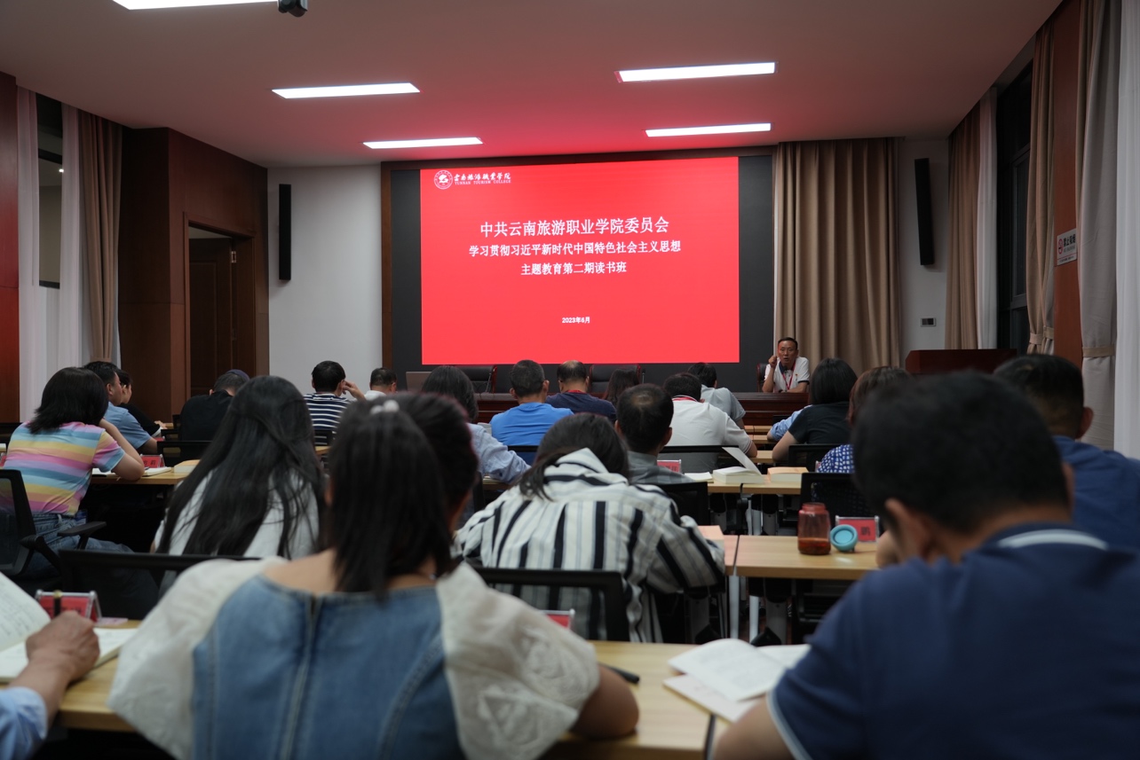 26日上午,读书班邀请大理大学马克思主义学院原院长、二级教授赵金元专题讲授《深入学习贯彻党的二十大精神——习近平生态文明思想及其在大理的实践》。26日晚,学院党委委员、副院长符继红以《旅游教育改革发展之浅见》为题围绕职业教育、旅游行业现状、云南经济建设及产业发展等要素,对未来学院办学方向、重点任务及实施路径等进行分享。27日下午,中共大理州委党校马云波副教授以《习近平新时代中国特色社会主义思想解读》为题作专题辅导,结合主题教育“坚持学思用贯通、知信行统一”的根本任务以及“学思想、强党性、重实践、建新功”的总要求,全面系统阐释了习近平新时代中国特色社会主义思想的形成和发展、主要内容、重大意义,并结合大理州近年来生态文明建设实践、洱海治理恢复保护、文化旅游产业高质量发展等实例,生动解读了习近平新时代中国特色社会主义思想所蕴含的理论意义和实践意义。本期读书班专题辅导主题鲜明、内涵丰富、紧贴实际,具有很强的针对性和指导性,学员反响强烈,收获颇丰。
