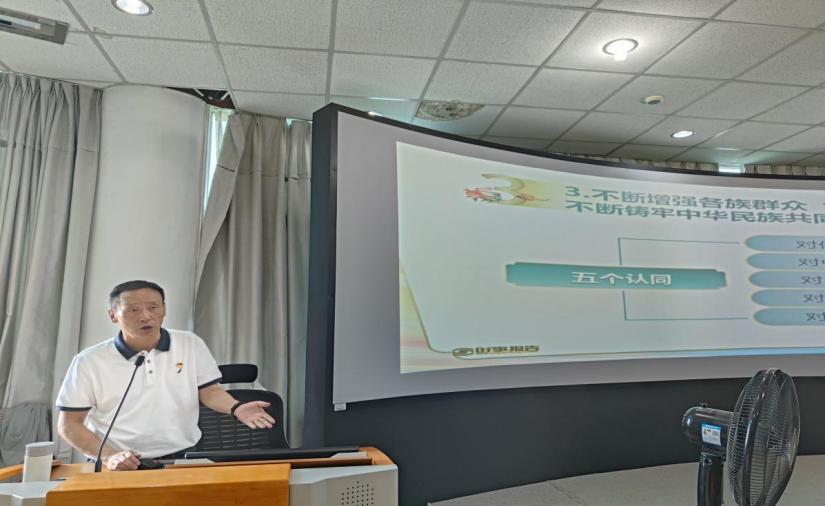 王敏副书记以“铸牢中华民族共同体意识,共同绘就中华民族伟大复兴壮美画卷”为主题,围绕团结之源、变化之巨、长远之治,从深刻把握中华民族多元一体的基本国情、全面认识民族团结进步事业的伟大成就、推动新时代党的民族工作高质量发展三个方面,结合具体案例进行了深入浅出地讲解,进一步坚定了全体参训人员对伟大祖国、中华民族、中华文化、中国共产党、中国特色社会主义的高度认同。