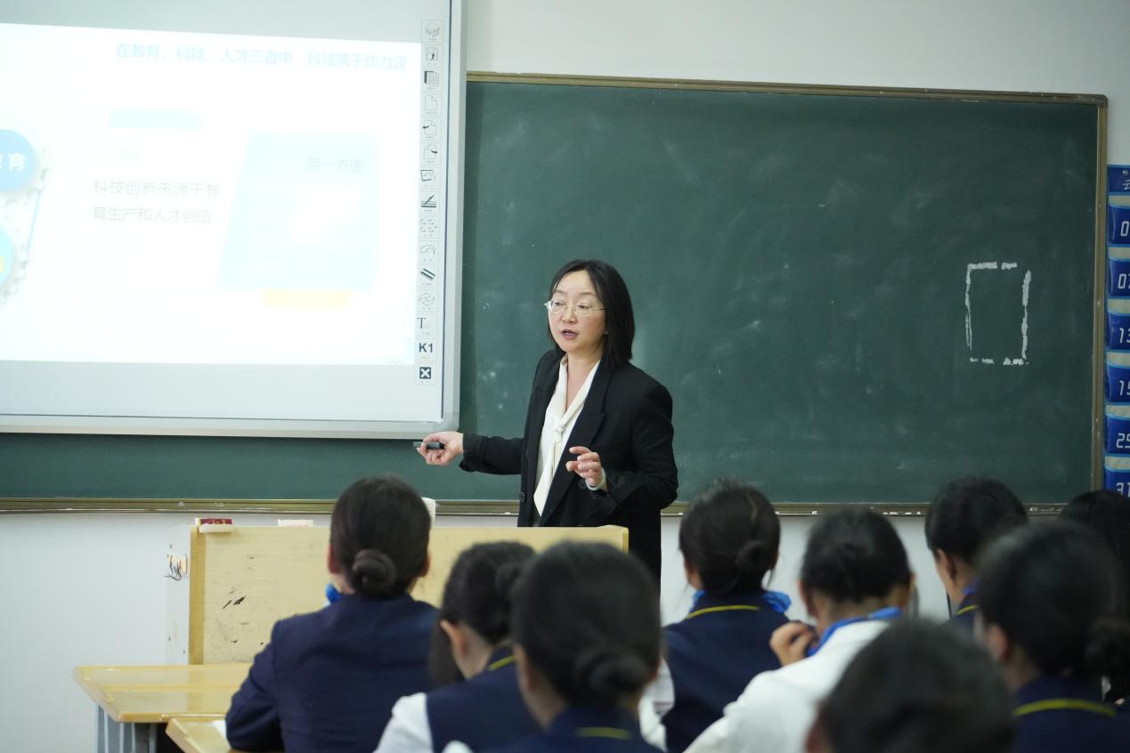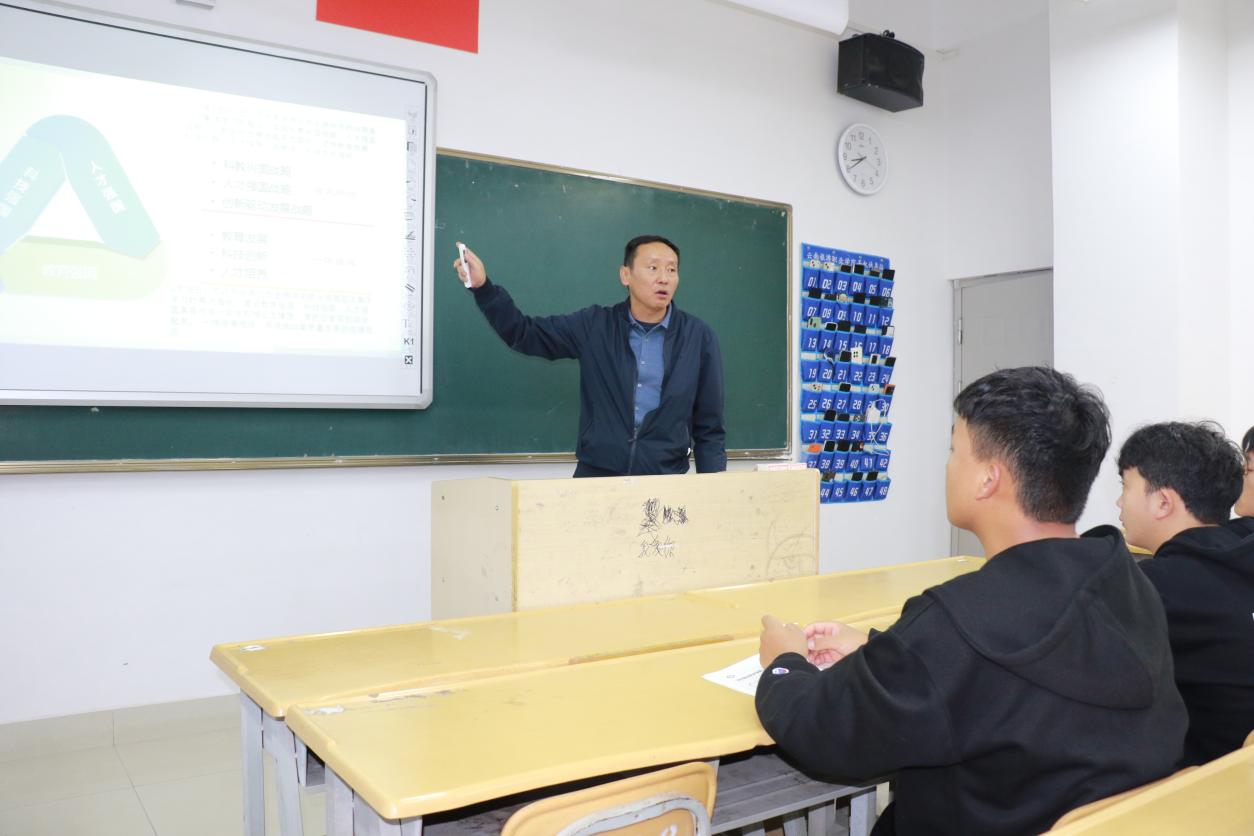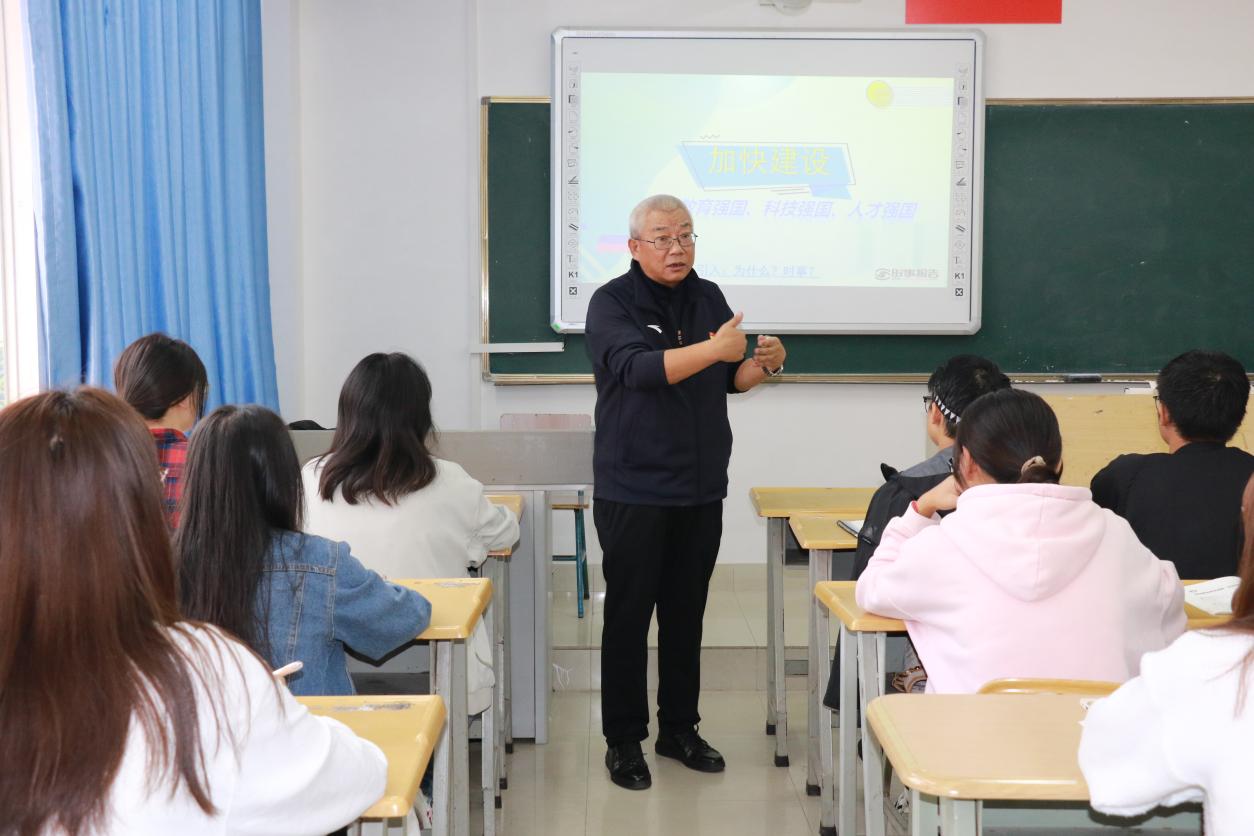院长蔡冰围绕“着眼长远发展的重大抉择”等四个方面内容,先是从历史维度,向学生们讲解了学校的历史、新校区建设以及办学的优势特色,引导学生知校史、立大志、成大器,树立起对学校以及所学专业的自信;又从现实维度,要求学生坚定理想信念,让学生深刻认识到教育优先发展、科技自立自强、人才引领驱动对全面建设社会主义现代化国家的重要作用和深远影响。