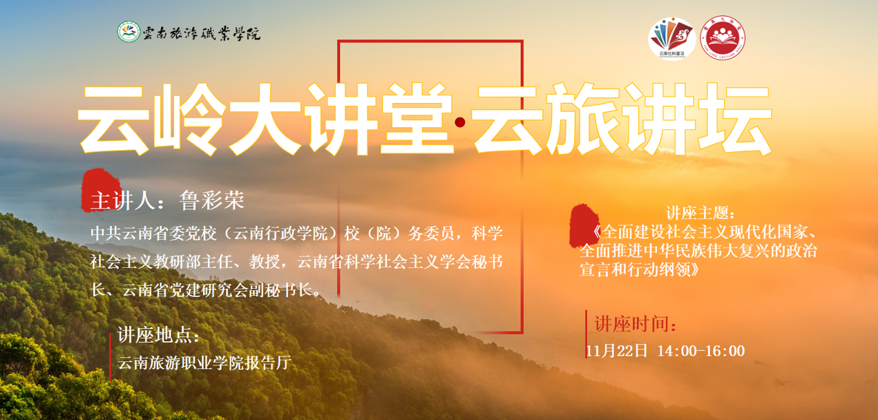 为深入学习贯彻党的二十大精神,巩固拓展学习贯彻习近平新时代中国特色社会主义思想主题教育成果,落实立德树人根本任务,11月22日下午,我校在报告厅举行“云岭大讲堂·云旅讲坛”专场报告会,旨在进一步提升党员干部及广大教职工的理论水平和履职能力。讲座由党委副书记王敏主持,校领导、全体党员、师生代表共500余人到场聆听。